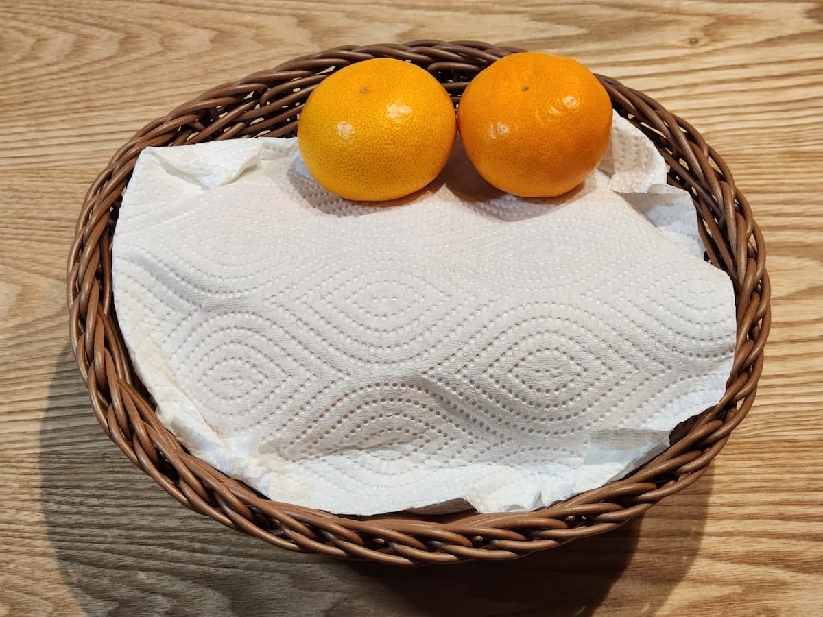 • 습기 조절: 신문지나 키친타월이 귤에서 나오는 미세한 습기를 흡수하여 곰팡이 발생을 줄여줍니다.