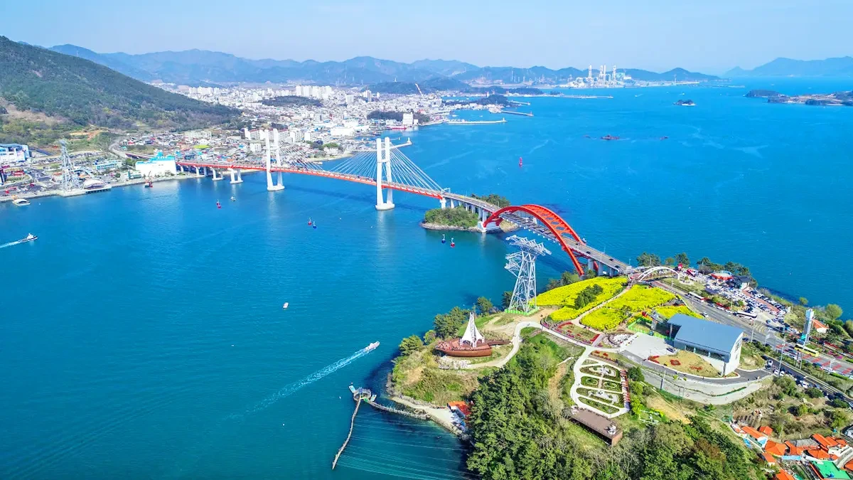 2. 삼천포대교공원: 바다와 다리의 로맨틱 만남 🌉