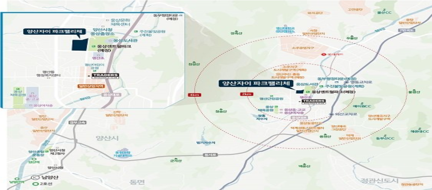 양산~부산을 오가는 도로 접근성, 생활편의시설 및 미래 개발호재까지 고루 갖춘 입지입니다.