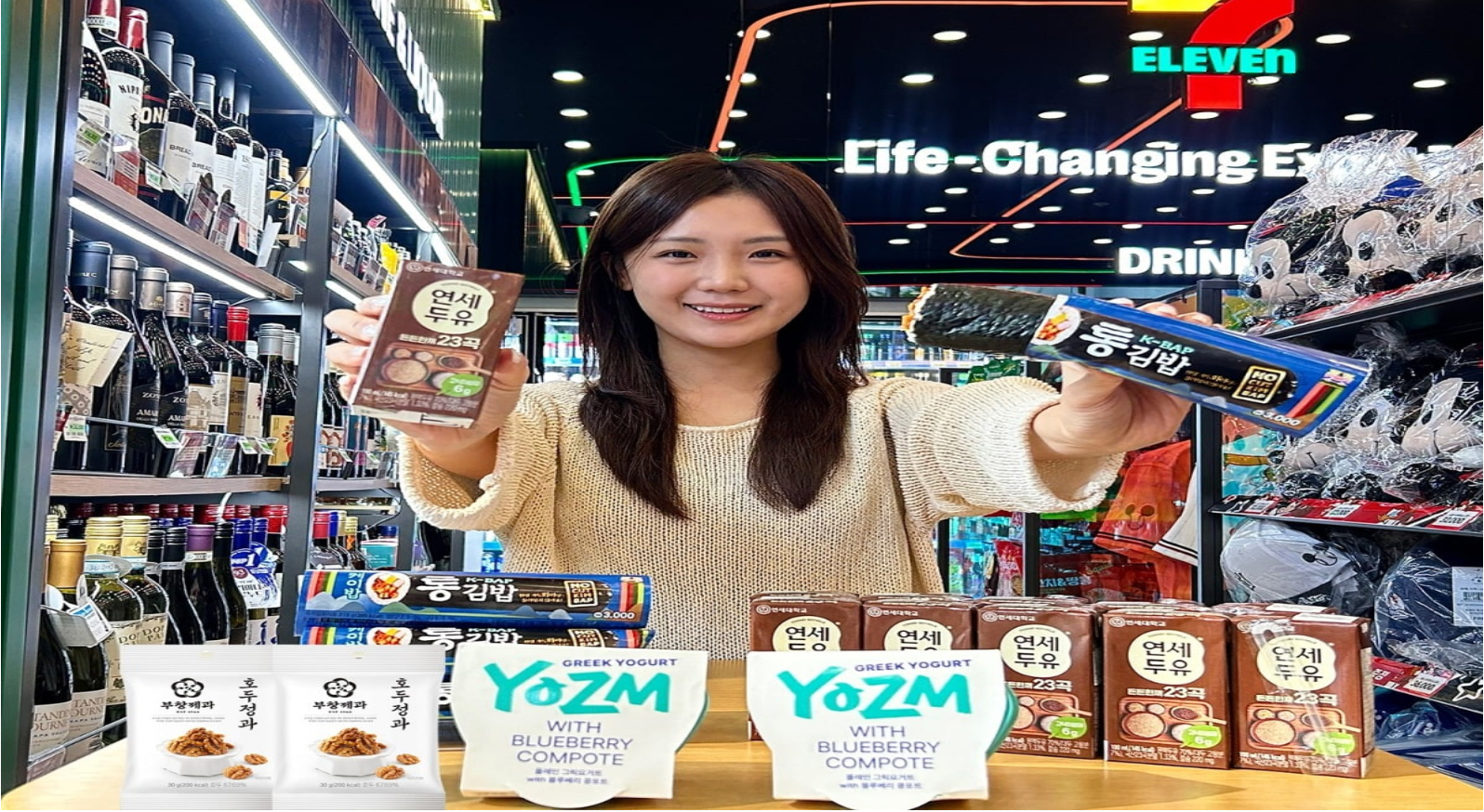 2) 히트 상품의 교차 진열: 과자·음료·즉석식품뿐 아니라 K-뷰티 소형 키트와 위생용품을 계산대 주변에 묶어 보여주며 ‘한 번에 담기’를 유도했습니다.