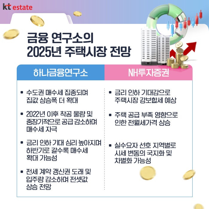 2025년 상반기에는 대출 규제, 정치적 불확실성 등으로 약세를 보일 전망이지만, 하반기에는 기준금리 인하 신호와 공급절벽에 힘입어 매수세가 살아날 것으로 예측됩니다.